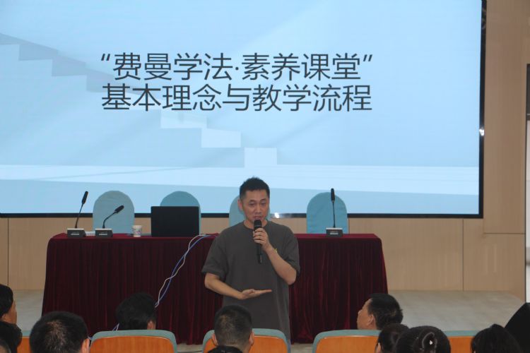 費(fèi)曼學(xué)法,要“突出學(xué)生的主體地位”,“以學(xué)定教”,陳老師沒有干巴巴地輸出理論,而是以兩節(jié)公開課為例,具體明確地向大家展示了教學(xué)流程。我校老師們化身學(xué)生,隨著陳老師進(jìn)入物理的世界,分組學(xué)習(xí),自主預(yù)習(xí),組內(nèi)討論,并派代表上臺(tái)展示成果,接受其他小組的質(zhì)疑。陳老師精彩的點(diǎn)評(píng)幽默風(fēng)趣,極富個(gè)人魅力,在他的帶領(lǐng)下,老師們積極發(fā)言,完全融入到自己扮演的角色中,氛圍輕松,笑語(yǔ)不斷。