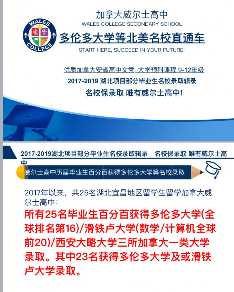 威爾士高中是加拿大多倫多著名本地高中,加拿大安大略省教育部注冊并通過嚴格審查評估,提供高質量安省高中學分課程;威爾士高中為多倫多唯一SAT(美國高考)官方考試中心/ACT(美國高考)官方考試中心/IELTS雅思官方考試中心,威爾士高中聲譽卓越,國際認可,秉承國際標準,構建美加名校直升通道,歷屆畢業(yè)生百分百升入美加英澳等世界名校!