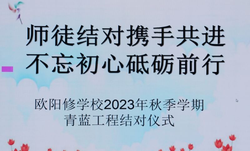 “青藍(lán)”薪火傳九月,新老互促鑄師魂,2023年9月6日,宜昌歐陽修學(xué)校隆重舉行了“青藍(lán)工程”師徒結(jié)對儀式和青年教師座談會。
