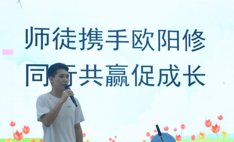 萬老師代表老教師鄭重承諾,他們將成為年輕老師們未來發(fā)展道路上的良師益友,幫助青年教師實現(xiàn)個人成長,他說:“我們?nèi)w師父愿與在座的徒弟們鉆研教材,研究學(xué)情,落實‘先學(xué)后教’、‘以學(xué)生為主體’、‘以學(xué)生為中心’的理念,踐行‘至善至喜’的校訓(xùn)。希望你們:做一個眼中有光、心中有愛、手中有尺、心態(tài)陽光的好教師。希望你們:抱著對教育的堅守,不抱怨、不后悔、不迷茫、不倦怠。希望你們:虛心向身邊的老師學(xué)習(xí),精心備好每一節(jié)課,用心聽好每一節(jié)課,耐心講評好每一份試卷,在教學(xué)中不斷總結(jié)反思,提高自己的專業(yè)技能,成就學(xué)生也成全自己。”