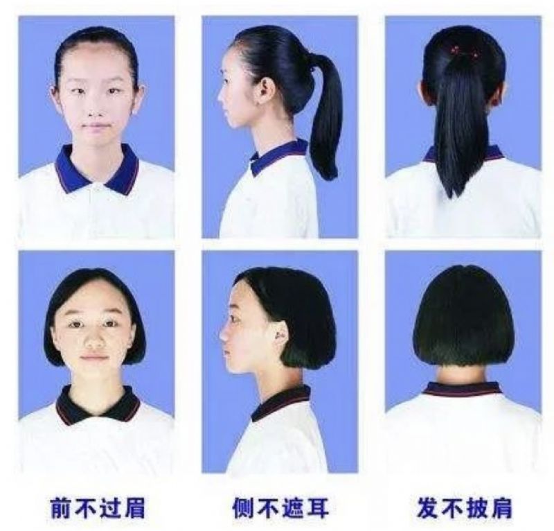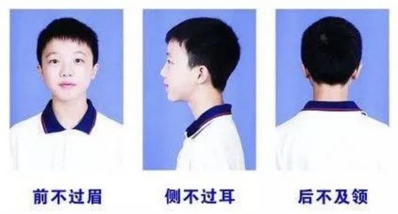 1、儀容儀表符合中學(xué)生規(guī)范,不燙發(fā)染發(fā),不化妝,男生不留長發(fā)(發(fā)型要求見上圖),不著奇裝異服;學(xué)生在校一律穿校服,不準(zhǔn)佩戴飾物。新學(xué)期報(bào)到時(shí)所有學(xué)生著校服入校(高一年級(jí)、七年級(jí)除外),儀容儀表不合格的不辦理報(bào)名手續(xù)。
