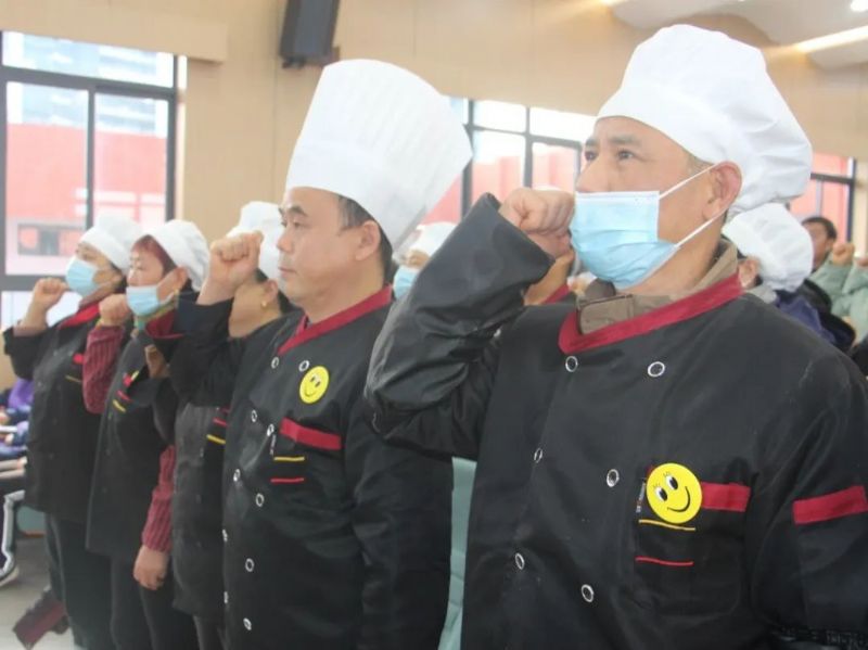 儀式最后,全體后勤人員莊嚴(yán)宣誓,他們將牢記學(xué)校重托,認(rèn)真履行崗位職責(zé),恪守學(xué)校規(guī)章制度,鉆研業(yè)務(wù),提高技能,努力工作,真心服務(wù),為維護(hù)學(xué)校有機(jī)運轉(zhuǎn)和優(yōu)良秩序孜孜不倦、任勞任怨,為學(xué)生吃好每頓飯、睡好每個覺、上好每節(jié)課、參加好每個活動、過好每一天而保駕護(hù)航!