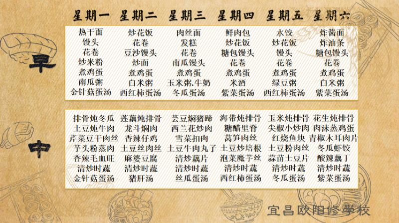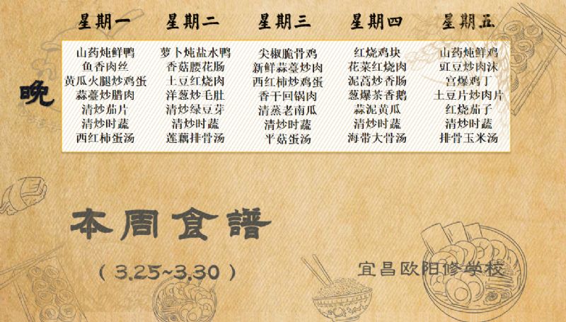 宜昌歐陽修學(xué)校每周食譜(3月25日至3月30日)