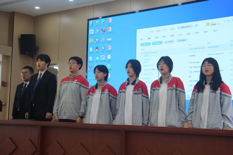 大會在莊嚴(yán)的國歌聲中拉開序幕。