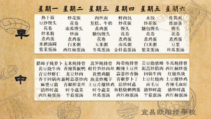 宜昌歐陽修學(xué)校每周食譜(4月15日至4月20日)