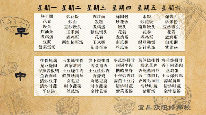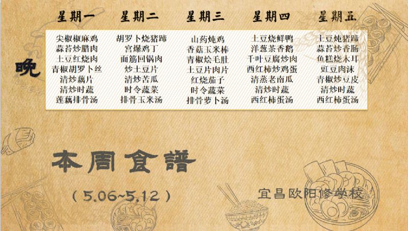 宜昌歐陽修學(xué)校每周食譜(5月06日至5月12日)