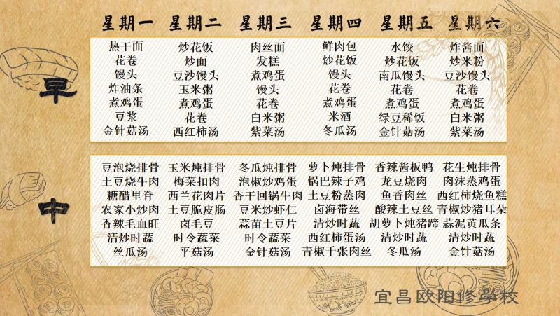 宜昌歐陽修學校每周食譜(5月20日至5月26日)