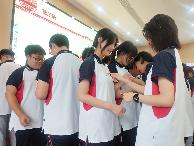 第三項(xiàng),老團(tuán)員為新團(tuán)員佩戴團(tuán)徽并頒發(fā)團(tuán)章。