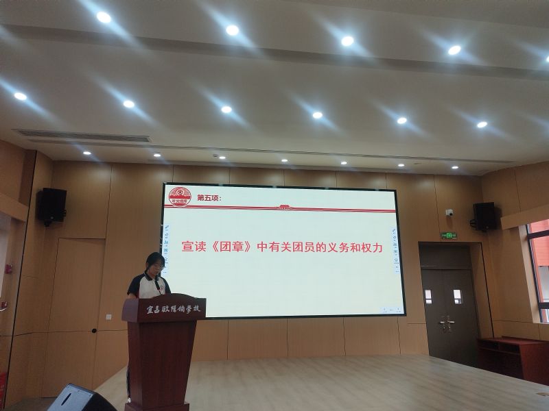 第五項(xiàng),溫羨妮同學(xué)宣讀團(tuán)員權(quán)利和義務(wù)。