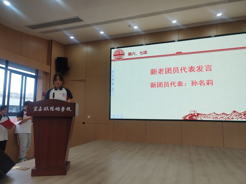 第六項(xiàng),新團(tuán)員代表孫名莉同學(xué)講話。