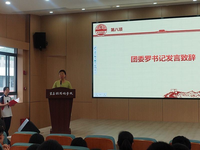 第九項(xiàng),德育副校長(zhǎng)向麗華同志對(duì)新團(tuán)員寄語(yǔ)。