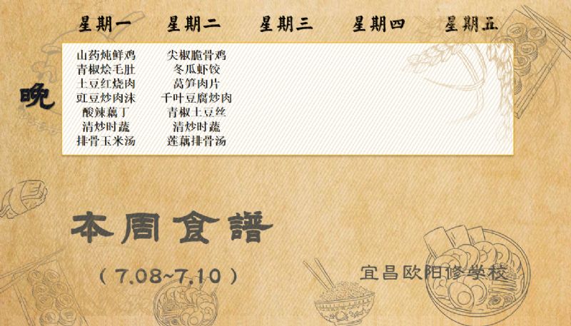 宜昌歐陽修學(xué)校每周食譜(7月8日至7月10日)
