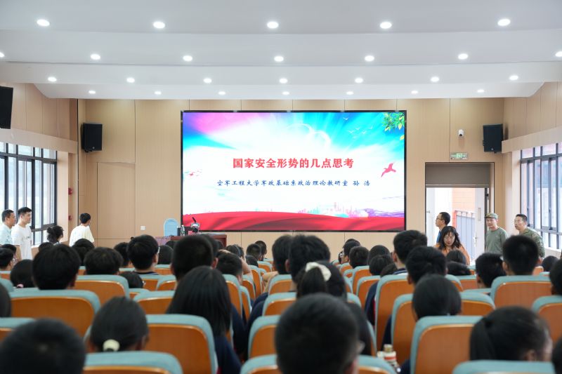 少年興則國興,少年強則國強。校園國防教育是全民國防教育的基礎(chǔ)。為進一步弘揚愛國主義精神,加強青少年思想政治建設(shè),深入挖掘愛國主義精神內(nèi)涵,賡續(xù)紅色血脈,厚植國防教育情懷和愛黨、愛國、愛社會主義情感。26日下午,學(xué)校組織高一新生開展有關(guān)《國家安全形勢的幾點思考》專題教育講座。講座上來自空軍工程大學(xué)軍政基礎(chǔ)系政治理論教研室的孫浩教授從當(dāng)前我國國家安全面臨的時代特征、風(fēng)險挑戰(zhàn)以及防范化解國家安全風(fēng)險的內(nèi)外條件三個方面細致地介紹了國家安全形勢及變化,在同學(xué)們心底種下了一顆愛國、擁軍、強軍的種子。