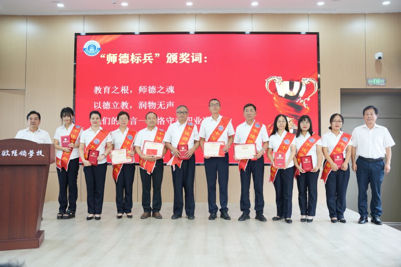 在隨后的頒獎(jiǎng)典禮上,幾位校長(zhǎng)分別為宜昌歐陽(yáng)修學(xué)?!笆呀虝?shū)育人能手”(高曉軍、胡平、姜尚金、羅琰淼、李駿、王海玉、王優(yōu)喜、姚子云、張躍新、張琴)、“十佳師德標(biāo)兵”(郭俊峰、胡小明、李蘇穎、李曉鱈、牛家濤、萬(wàn)詩(shī)榮、向麗華、楊晶、楊曉麗、周志清)及"學(xué)期質(zhì)量獎(jiǎng)"(張燕平、岑歲、徐煒、楊晶、羅琰淼、覃立娥、陳孝娟、曹沁燕、李駿、楊曉麗、錢(qián)靖玟、陳詩(shī)琪等)獲得者頒獎(jiǎng)。他們不斷創(chuàng)新自己的教學(xué)方法,用質(zhì)量與成果,為學(xué)生鋪設(shè)成長(zhǎng)的道路,讓學(xué)生在知識(shí)的道路中穩(wěn)步前行。獲獎(jiǎng)教師們?cè)陬C獎(jiǎng)典禮上接受了榮譽(yù)證書(shū)和獎(jiǎng)品,現(xiàn)場(chǎng)掌聲不斷,氣氛熱烈。教師們的教學(xué)才華和辛勤付出得到了全體學(xué)生和同仁的高度贊揚(yáng)。