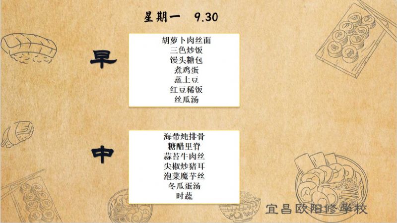 宜昌歐陽修學(xué)校每周食譜(9月23日至9月30日)