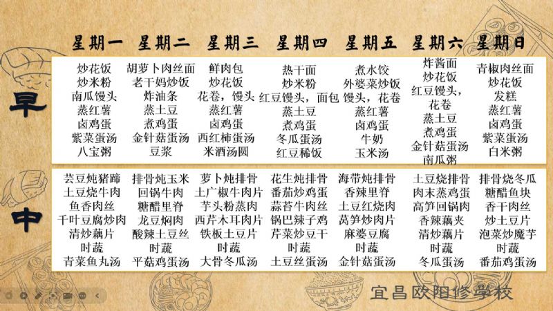 宜昌歐陽修學校每周食譜(11月18日至11月24日)