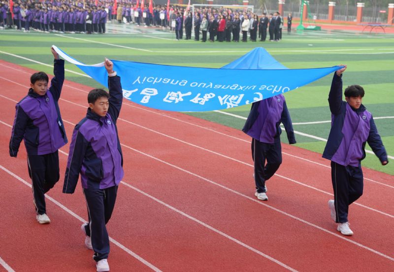 今天上午,運動會開幕式在莊嚴的國歌聲中正式拉開序幕。伴隨著雄壯的運動員進行曲,國旗隊、彩旗隊、花束隊依次走過主席臺,鮮艷的五星紅旗在藍天下迎風(fēng)飄揚。
