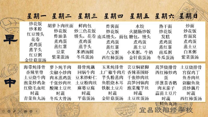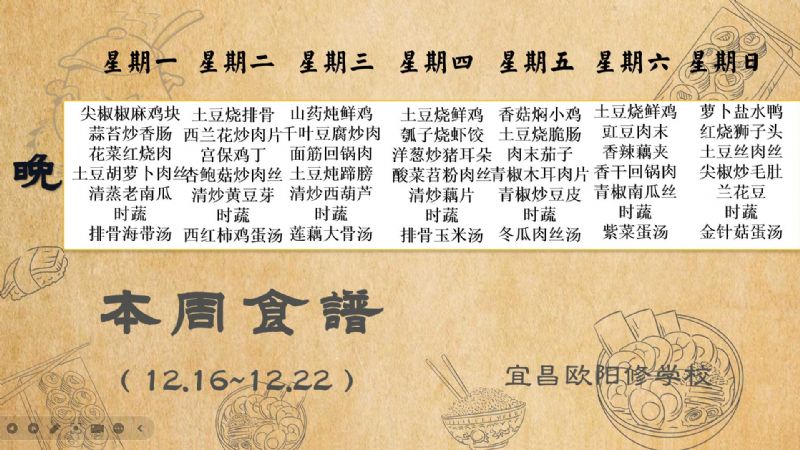 宜昌歐陽(yáng)修學(xué)校每周食譜(12月16日至12月22日)