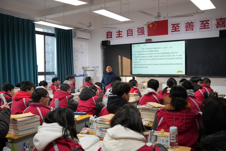 走進304班課堂,一堂專注于原電池習(xí)題解析的課程映入眼簾。周老師妙語連珠地引導(dǎo)學(xué)生回顧了原電池的組成及其工作原理,學(xué)生們踴躍發(fā)言,課堂氛圍濃厚。隨后,周老師鼓勵學(xué)生進行小組合作,并邀請小組代表上臺解析習(xí)題,教室掌聲與笑聲交織,學(xué)生們在輕松愉快的氛圍中汲取知識的養(yǎng)分。