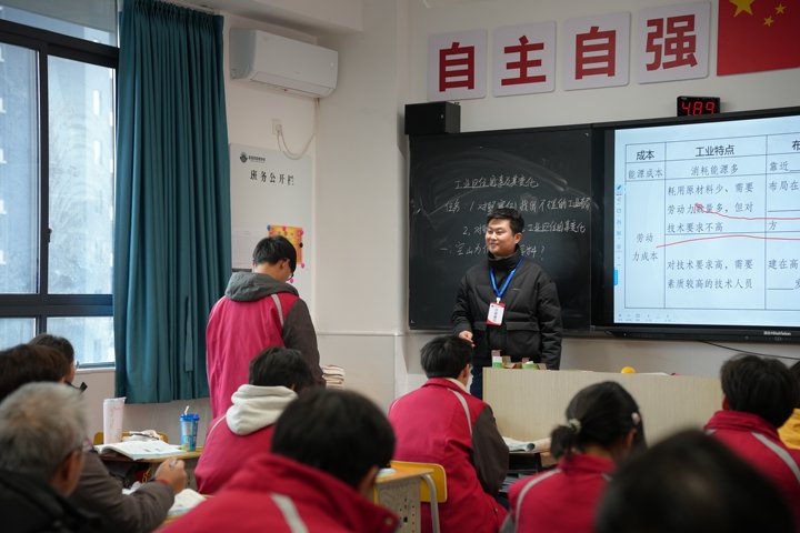 觀摩302班的地理課堂,張老師引領(lǐng)學(xué)生圍繞具體實例,深入剖析復(fù)雜工業(yè)布局之謎,并系統(tǒng)總結(jié)工業(yè)區(qū)位因素的變遷規(guī)律,以此作為課堂兩大核心議題,拉開了課程的精彩序幕。學(xué)生分為四個小組,展開了熱烈的討論。討論結(jié)束后,各組代表進行發(fā)言。針對學(xué)生們拋出的種種疑問,張老師逐一深入探討,耐心解答,其解析深入淺出、條理清晰,重難點把握精準(zhǔn),破解巧妙。在這堂課中,張老師以生動的語言結(jié)合多媒體資料,有效鞏固學(xué)生知識,提升學(xué)習(xí)效果。