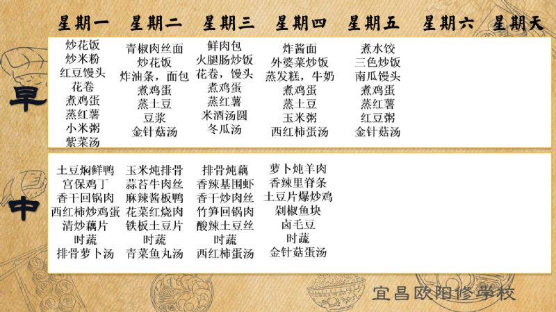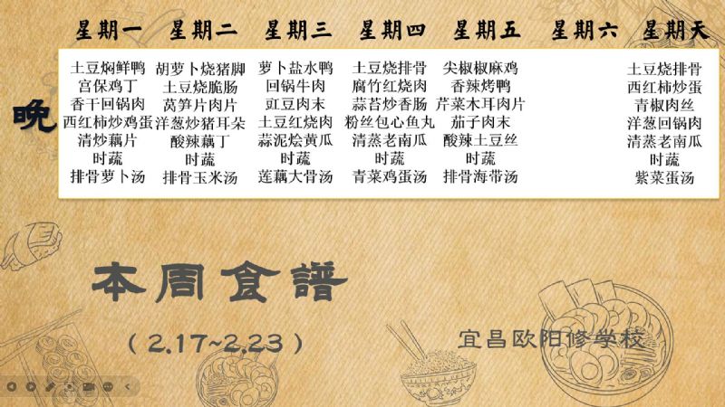 宜昌歐陽修學(xué)校每周食譜(2月17日至2月23日)